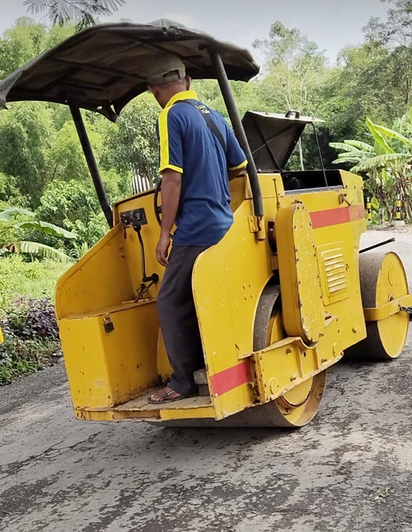 Pekerjaan Proyek Jaringan Jalan Aspal Tegal Ampel – Taman Krocok seharusnya menggunakan Mesin Gilas 10 Ton karena tekanan dan daya Sentrifugal jauh lebih besar dari pada Mesin Gilas Baby yang beratnya 1 Ton.Secara ringkas bahwa,Mesin Gilas Baby yang beratnya hanya 1 Ton hanya bisa dipergunakan untuk pekerjaan ringan diarea terbatas,”ungkapnya.
